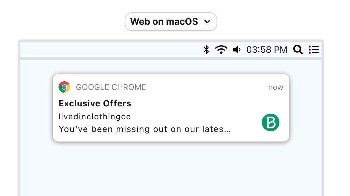 Setting up push notifications for your website is easy. Web push notifications, also called "browser notifications or "Chrome notifications" are supported by the major web browsers, such as Chrome, Edge, Opera, Yandex. Web psh notifications are the ideal solution to re-engage users and bring them back to your website.